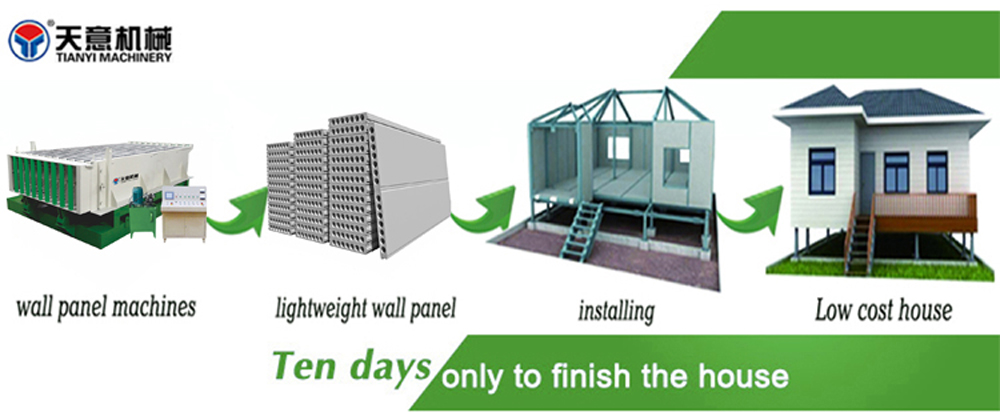 8、The equipment is multi-functional and the thickness and length of the wall panel is adjustable. Assembly line process is adopted for the entire units with annual production capacity of 2 million ㎡.