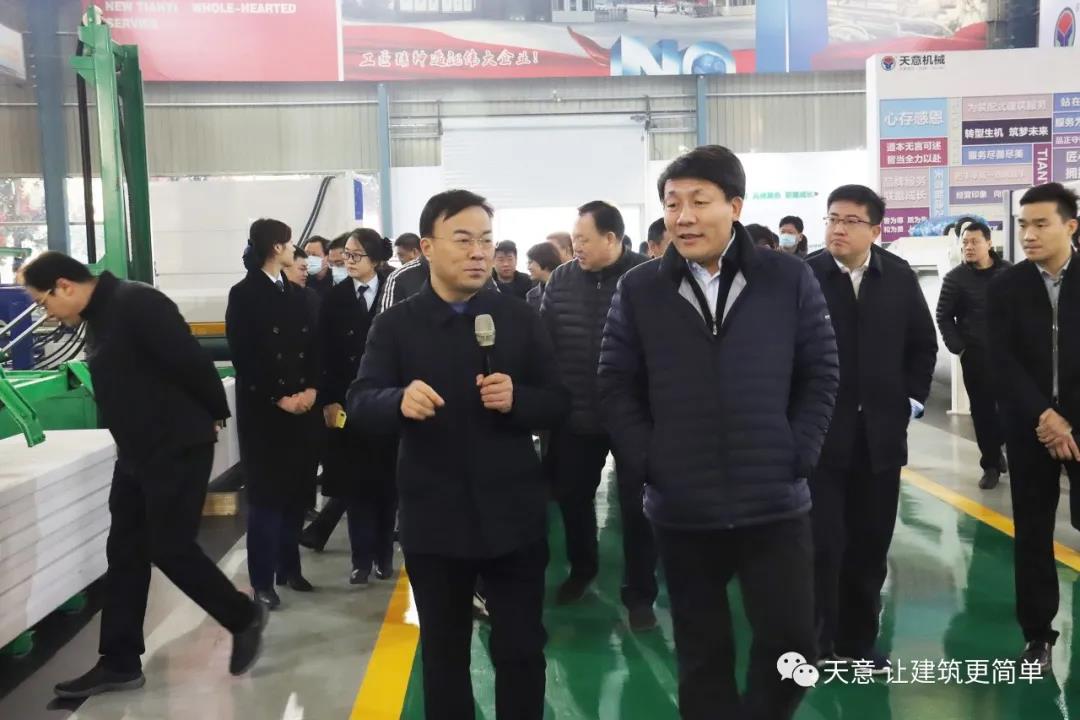 12月18日上午,鄒城市委常委、副市長(zhǎng)欒濤一行蒞臨天意考察全市新舊動(dòng)能轉(zhuǎn)換現(xiàn)場(chǎng)觀摩項(xiàng)目——裝配式建筑自動(dòng)化PC生產(chǎn)線項(xiàng)目。兗州區(qū)委常委、區(qū)政府副區(qū)長(zhǎng)、黨組副書記屈耀武,天意機(jī)械董事長(zhǎng)劉洪彬陪同考察。