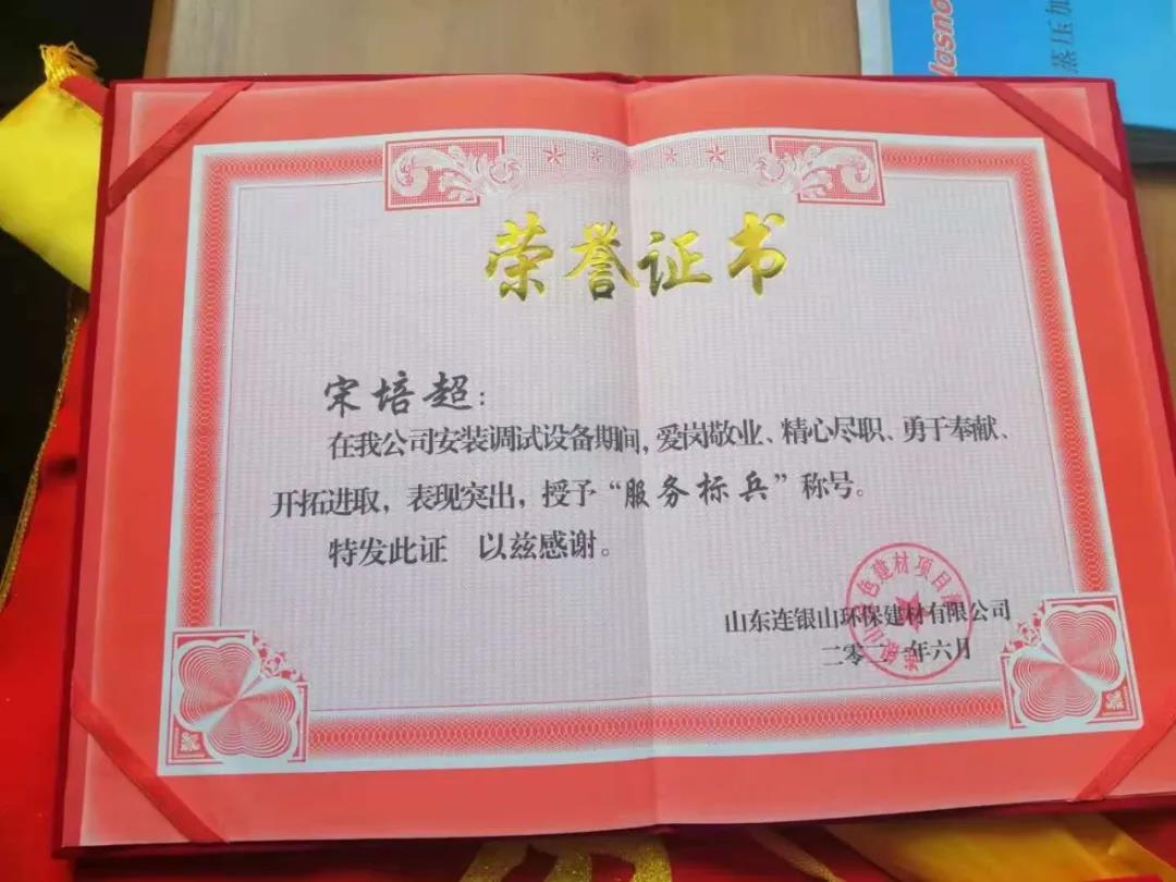 喜訊丨天意機械售后團隊獲得客戶表彰
