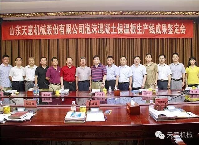 為加快產(chǎn)業(yè)結(jié)構(gòu)轉(zhuǎn)型升級,突出科技創(chuàng)新驅(qū)動企業(yè)發(fā)展,7月23日,由山東省機(jī)械工業(yè)協(xié)會處長李玉奎帶隊(duì)一行領(lǐng)導(dǎo)專家,蒞臨天意機(jī)械組織召開 "泡沫混凝土保溫板生產(chǎn)線” 和 “石膏墻板成型機(jī)” 科技成果鑒定會。濟(jì)寧市兗州區(qū)副區(qū)長周詠輝,集團(tuán)董事長劉洪彬、技術(shù)總監(jiān)陳維國等領(lǐng)導(dǎo)出席了本次會議。