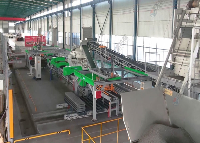 擠壓墻板生產(chǎn)線結(jié)構(gòu)緊湊,自動化程度高,設(shè)備主機(jī)固定,墻板成型時(shí)物料受擠壓和振動同時(shí)作用,連續(xù)自動擠壓振搗成型,保證墻板具有良好的密實(shí)性和外形尺寸,成型后進(jìn)行初凝養(yǎng)護(hù)。板坯移動方便,場地使用靈活、利用效率高。成型工段推料擠壓螺旋變頻調(diào)速,由中央控制器調(diào)整控制灰渣板成型的密實(shí)程度,實(shí)現(xiàn)灰渣板的連續(xù)自動流水線生產(chǎn)。由于采用低水灰比的干硬性混合料擠壓成型,可得到強(qiáng)度和密實(shí)度較高的空心墻板。自動化連續(xù)生產(chǎn),效率高,質(zhì)量一致性高,保障了墻板品質(zhì)。廣泛用于框架結(jié)構(gòu)和鋼結(jié)構(gòu)建筑物。